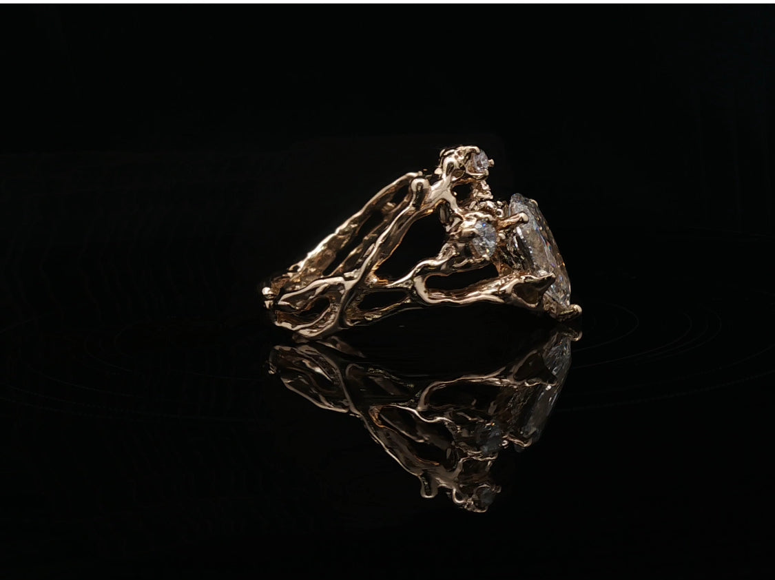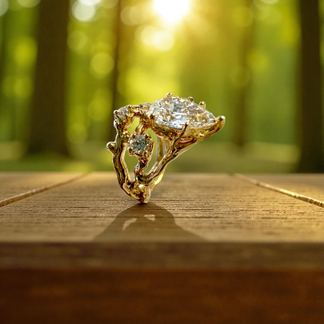 This one-of-a-kind engagement ring is handcrafted in 14k solid gold, featuring an organic twig design that feels both natural and enchanted.